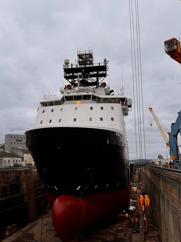 Eneria est fière d’avoir participé à un moment clé pour l’Abeille Normandie, remorqueur emblématique des côtes françaises, actuellement en cale sèche à Brest, dans l’une des plus anciennes infrastructures maritimes d’Europe — une cale historique du XVIIIᵉ siècle, témoin du génie naval français.